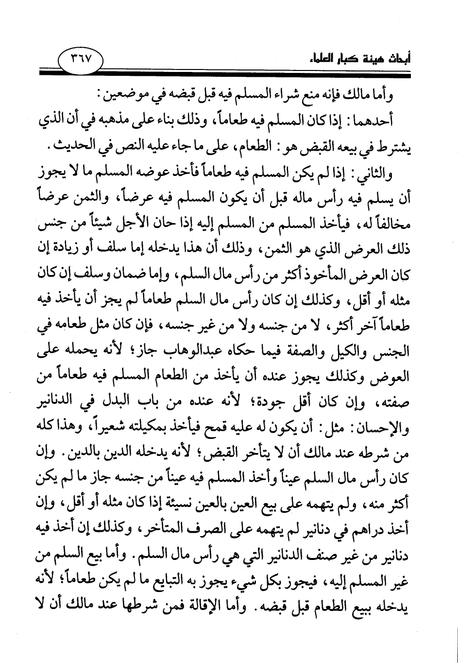 أحدهما: إذا كان المسلم فيه طعاما، وذلك بناء على مذهبه في أن الذي يشترط في بيعه القبض هو: الطعام، على ما جاء عليه النص في الحديث.