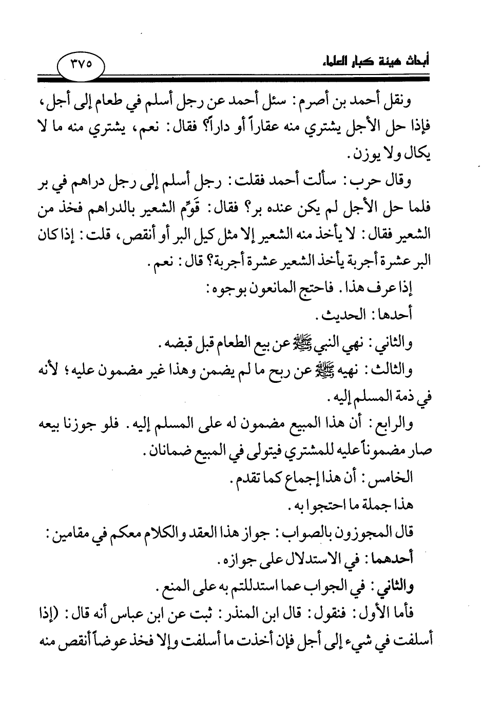 والرابع: أن هذا المبيع مضمون له على المسلم إليه، فلو جوزنا بيعه صار مضمونا عليه للمشتري فيتولى في المبيع ضمانان.
