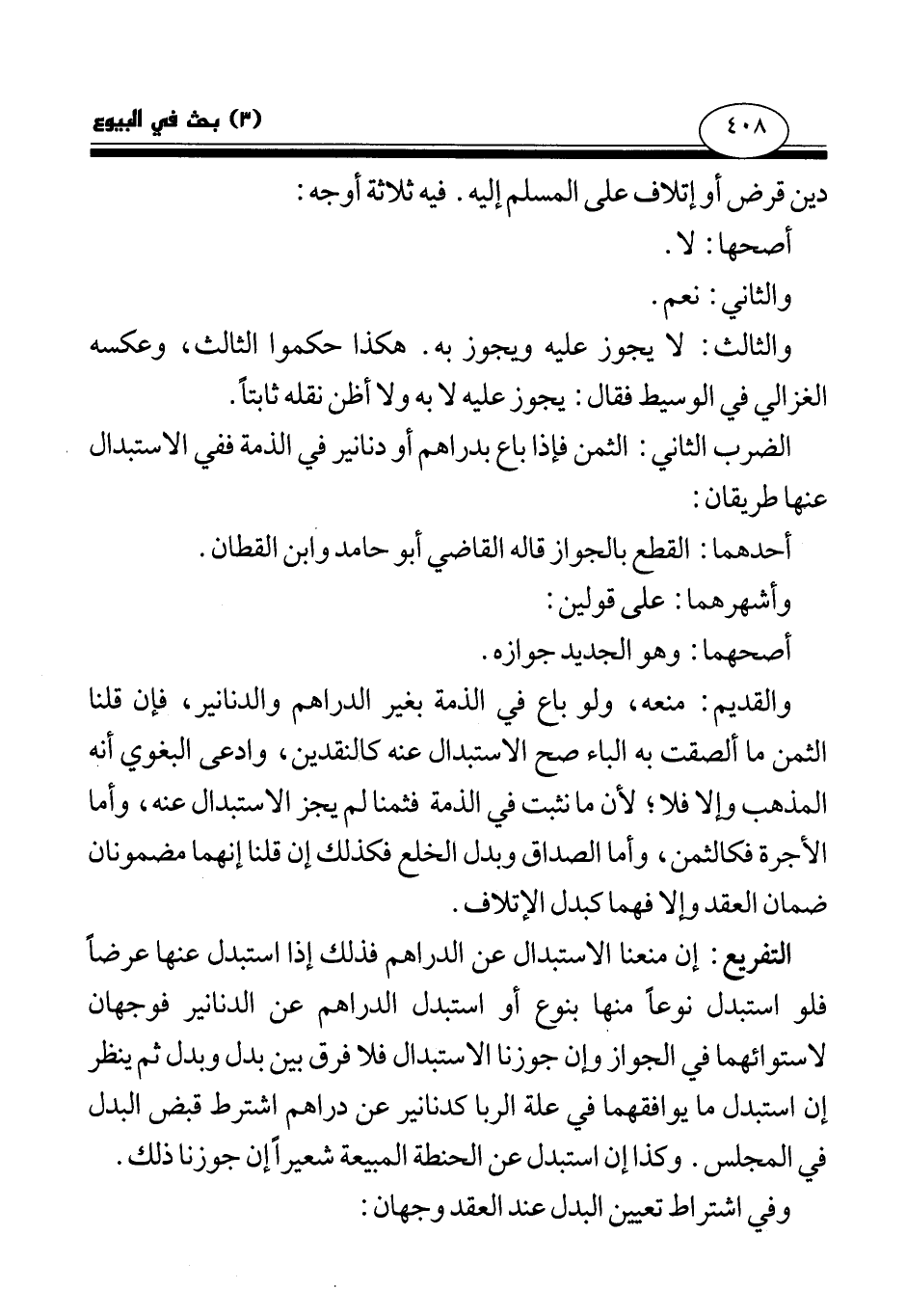 الضرب الثاني: الثمن فإذا باع بدراهم أو دنانير في الذمة ففي الاستبدال عنها طريقان: