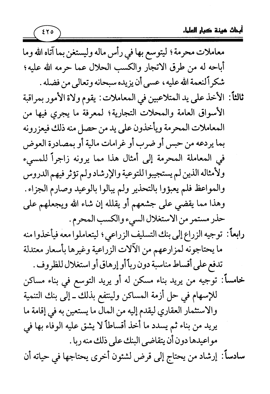 رابعا: توجيه الزراع إلى بنك التسليف الزراعي، ليتعاملوا معه فيأخذوا منه ما يحتاجونه لمزارعهم من الآلات الزراعية وغيرها بأسعار معتدلة تدفع على أقساط مناسبة دون ربا أو إرهاق أو استغلال للظروف.