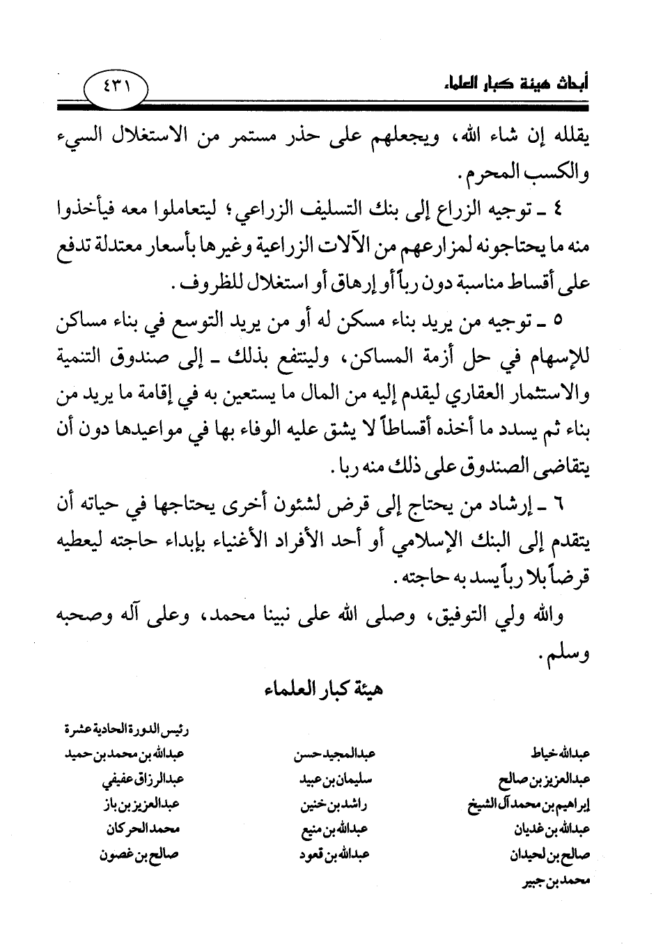 4 - توجيه الزراع إلى بنك التسليف الزراعي، ليتعاملوا معه فيأخذوا منه ما يحتاجونه لمزارعهم من الآلات الزراعية وغيرها بأسعار معتدلة تدفع على أقساط مناسبة دون ربا أو إرهاق أو استغلال للظروف.