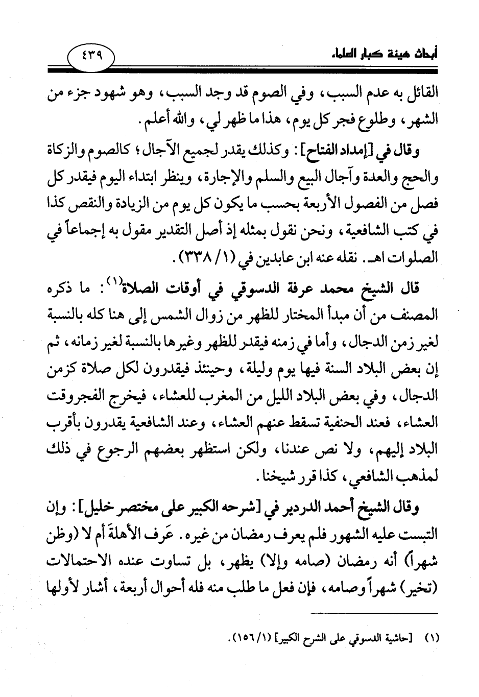 وقال في [إمداد الفتاح] : وكذلك يقدر لجميع الآجال، كالصوم والزكاة والحج والعدة وآجال البيع والسلم والإجارة، وينظر ابتداء اليوم فيقدر كل فصل من الفصول الأربعة بحسب ما يكون كل يوم من الزيادة والنقص كذا في كتب الشافعية، ونحن نقول بمثله إذ أصل التقدير مقول، إجماعا في الصلوات اهـ. نقله عنه ابن عابدين في (¬1) .