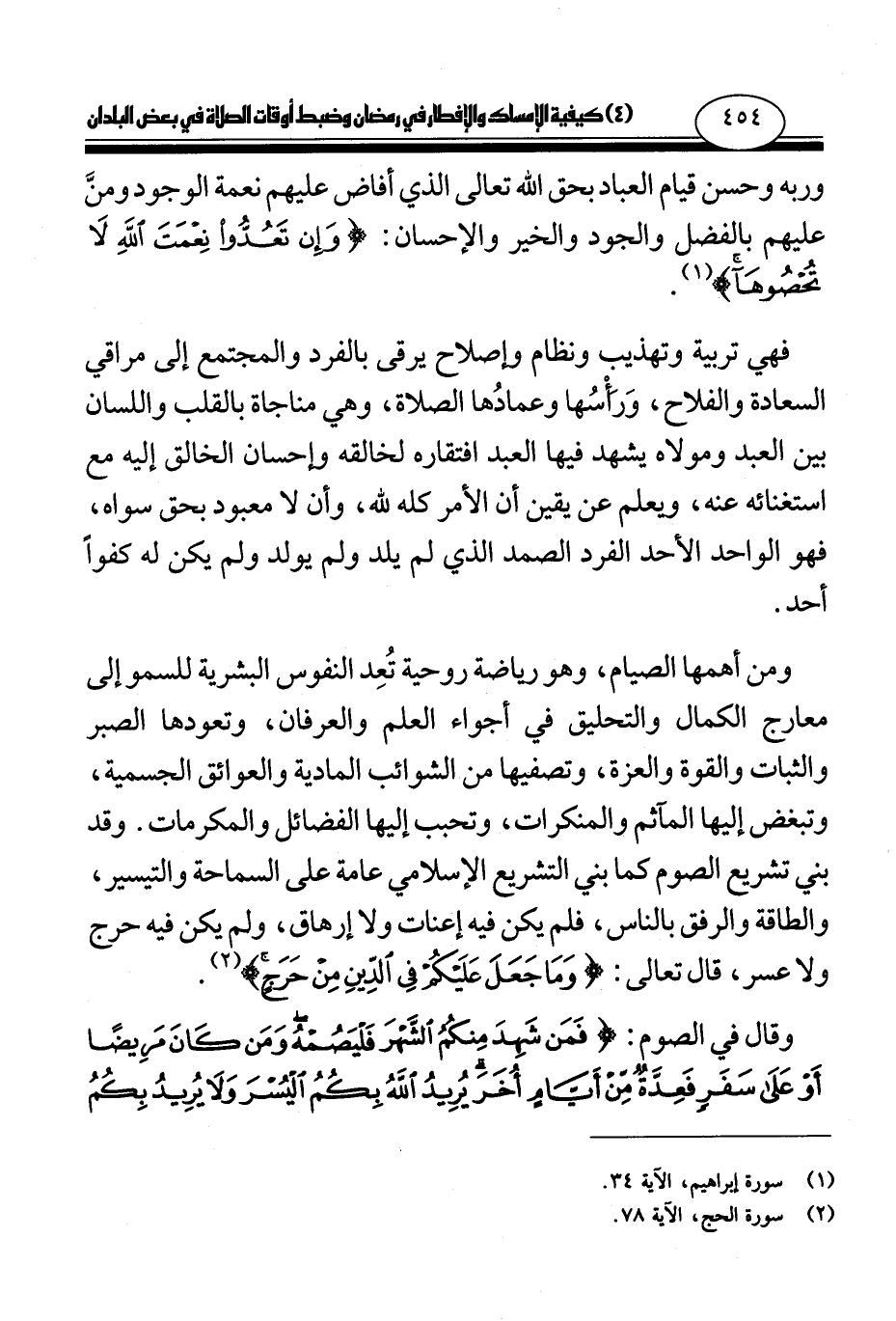 وقال في الصوم: {فَمَنْ شَهِدَ مِنْكُمُ الشَّهْرَ فَلْيَصُمْهُ وَمَنْ كَانَ مَرِيضًا أَوْ عَلَى سَفَرٍ فَعِدَّةٌ مِنْ أَيَّامٍ أُخَرَ يُرِيدُ اللَّهُ بِكُمُ الْيُسْرَ وَلَا يُرِيدُ بِكُمُ الْعُسْرَ وَلِتُكْمِلُوا الْعِدَّةَ وَلِتُكَبِّرُوا اللَّهَ عَلَى مَا هَدَاكُمْ وَلَعَلَّكُمْ تَشْكُرُونَ} (¬3)
