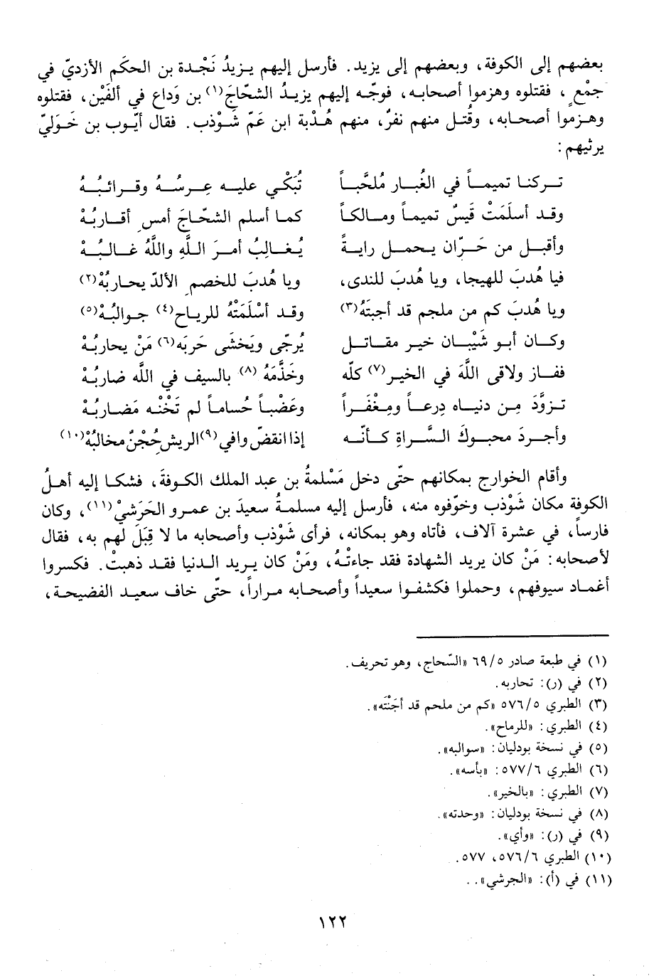 بَعْضُهُمْ إِلَى الْكُوفَةِ، وَبَعْضُهُمْ إِلَى يَزِيدَ. فَأَرْسَلَ إِلَيْهِمْ يَزِيدُ نَجْدَةَ بْنَ الْحَكَمِ الْأَزْدِيَّ فِي جَمْعٍ، فَقَتَلُوهُ وَهَزَمُوا أَصْحَابَهُ، فَوَجَّهَ إِلَيْهِمْ يَزِيدُ الشَّحَّاجُ بْنُ وَدَاعٍ فِي أَلْفَيْنِ، فَقَتَلُوهُ وَهَزَمُوا أَصْحَابَهُ، وَقُتِلَ مِنْهُمْ نَفَرٌ، مِنْهُمْ هُدْبَةُ ابْنُ عَمِّ شَوْذَبٍ. فَقَالَ أَيُّوبُ بْنُ خَوْلِيٍّ يَرْثِيهِمْ: