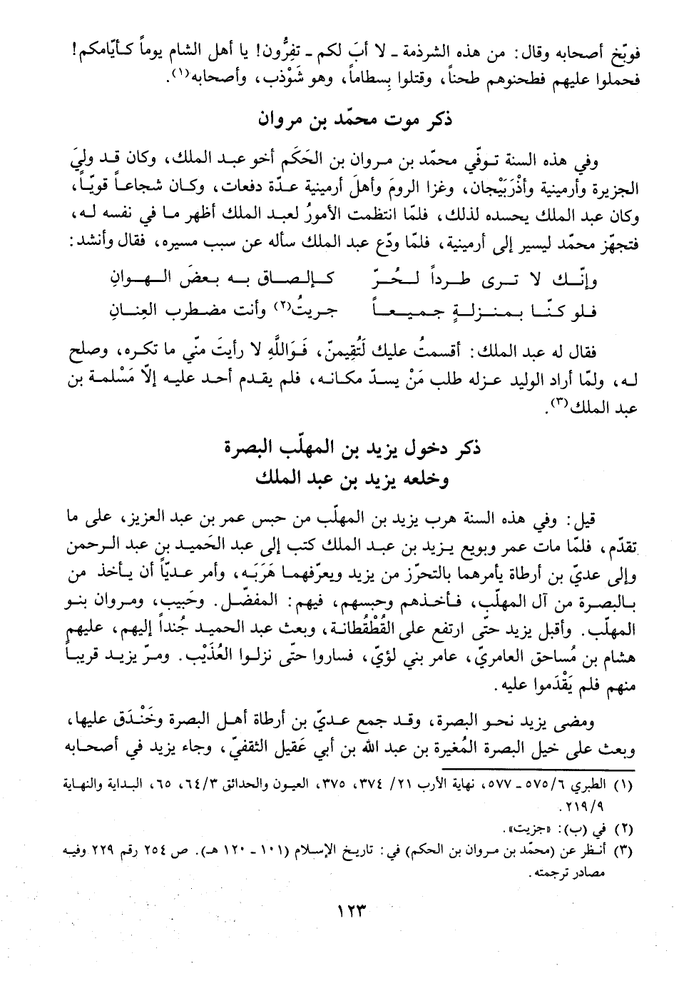 وَفِي هَذِهِ السَّنَةِ تُوُفِّيَ مُحَمَّدُ بْنُ مَرْوَانَ بْنِ الْحَكَمِ أَخُو عَبْدِ الْمَلِكِ، وَكَانَ قَدْ وَلِيَ الْجَزِيرَةَ وَأَرْمِينِيَّةَ وَأَذْرَبِيجَانَ، وَغَزَا الرُّومَ وَأَهْلَ أَرْمِينِيَّةَ عِدَّةَ دَفَعَاتٍ، وَكَانَ شُجَاعًا قَوِيًّا، وَكَانَ عَبْدُ الْمَلِكِ يَحْسُدُهُ لِذَلِكَ، فَلَمَّا انْتَظَمَتِ الْأُمُورُ لِعَبْدِ الْمَلِكِ أَظْهَرَ مَا فِي نَفْسِهِ لَهُ، فَتَجَهَّزَ مُحَمَّدٌ لِيَسِيرَ إِلَى أَرْمِينِيَّةَ، فَلَمَّا وَدَّعَ عَبْدَ الْمَلِكِ سَأَلَهُ عَنْ سَبَبِ مَسِيرِهِ، فَقَالَ وَأَنْشَدَ: