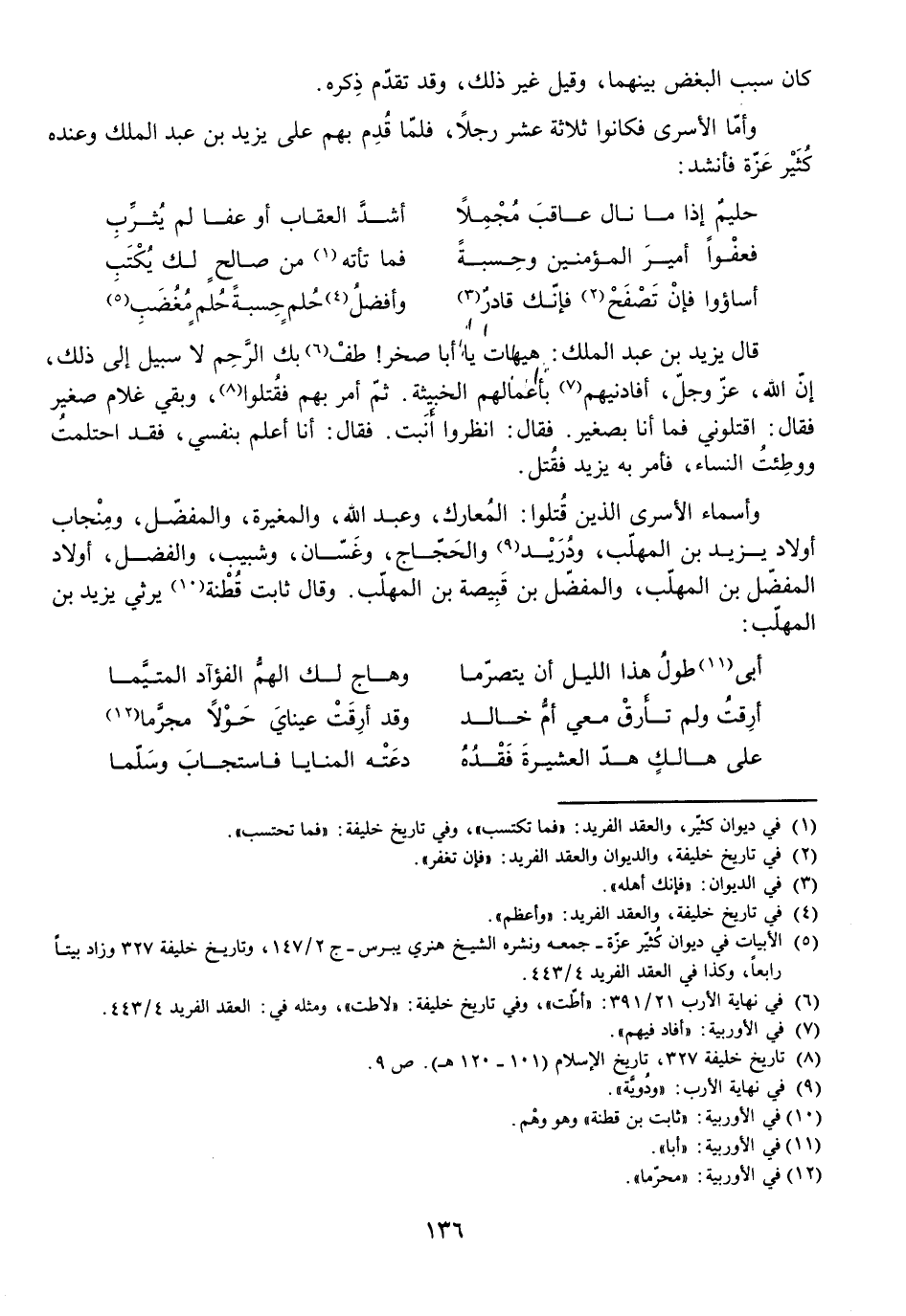وَأَمَّا الْأَسْرَى فَكَانُوا ثَلَاثَةَ عَشَرَ رَجُلًا، فَلَمَّا قَدِمَ بِهِمْ عَلَى يَزِيدَ بْنِ عَبْدِ الْمَلِكِ وَعِنْدَهُ كُثَيِّرُ عَزَّةَ، فَأَنْشَدَ: