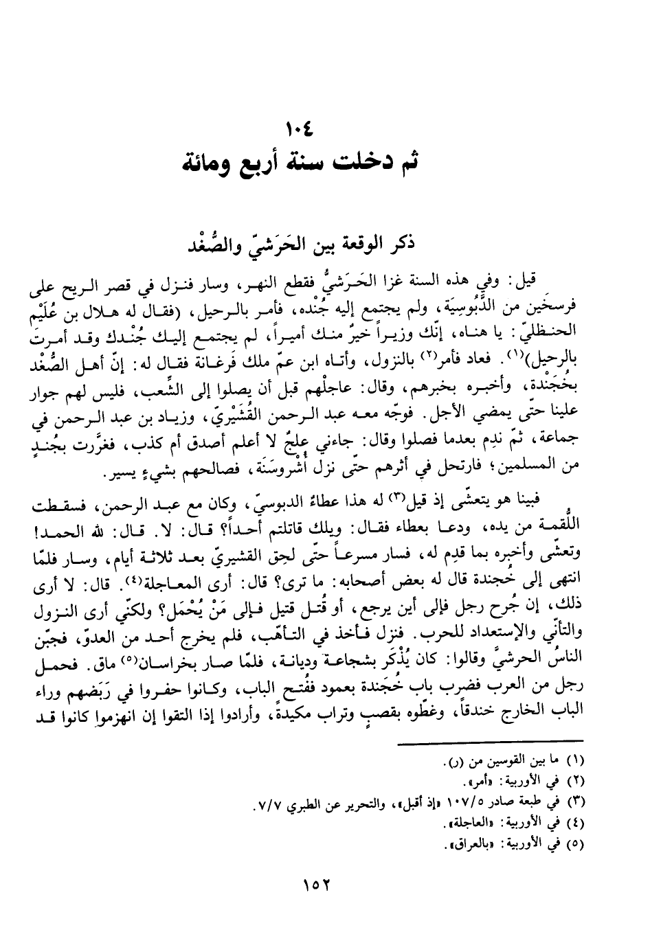 ثُمَّ دَخَلَتْ سَنَةُ أَرْبَعٍ وَمِائَةٍ
