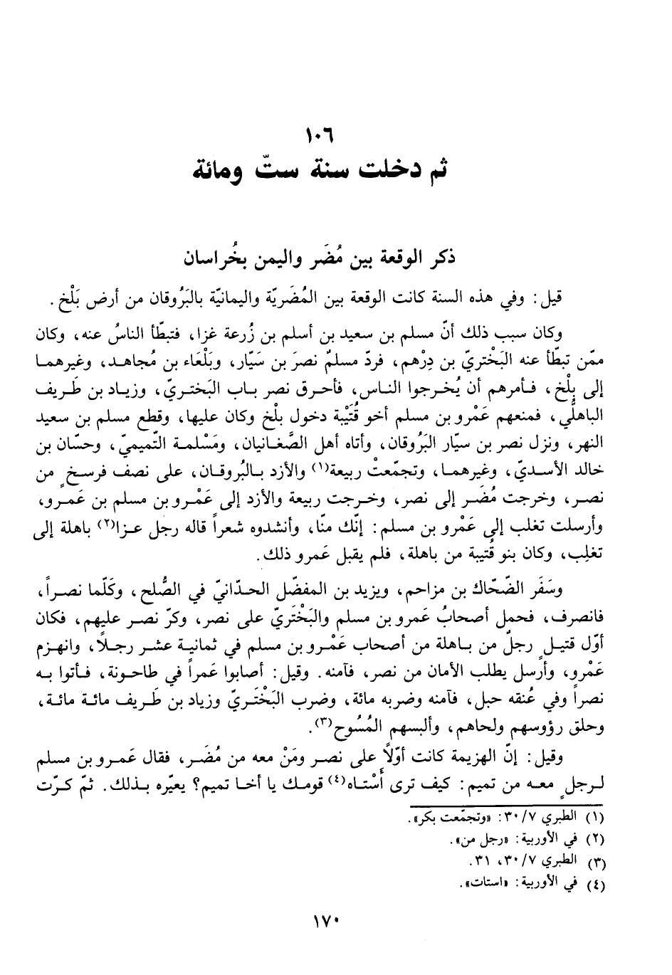 قِيلَ: وَفِي هَذِهِ السَّنَةِ كَانَتِ الْوَقْعَةُ بَيْنَ الْمُضَرِيَّةِ وَالْيَمَانِيَّةِ بِالْبَرُوقَانِ مِنْ أَرْضِ بَلْخٍ.