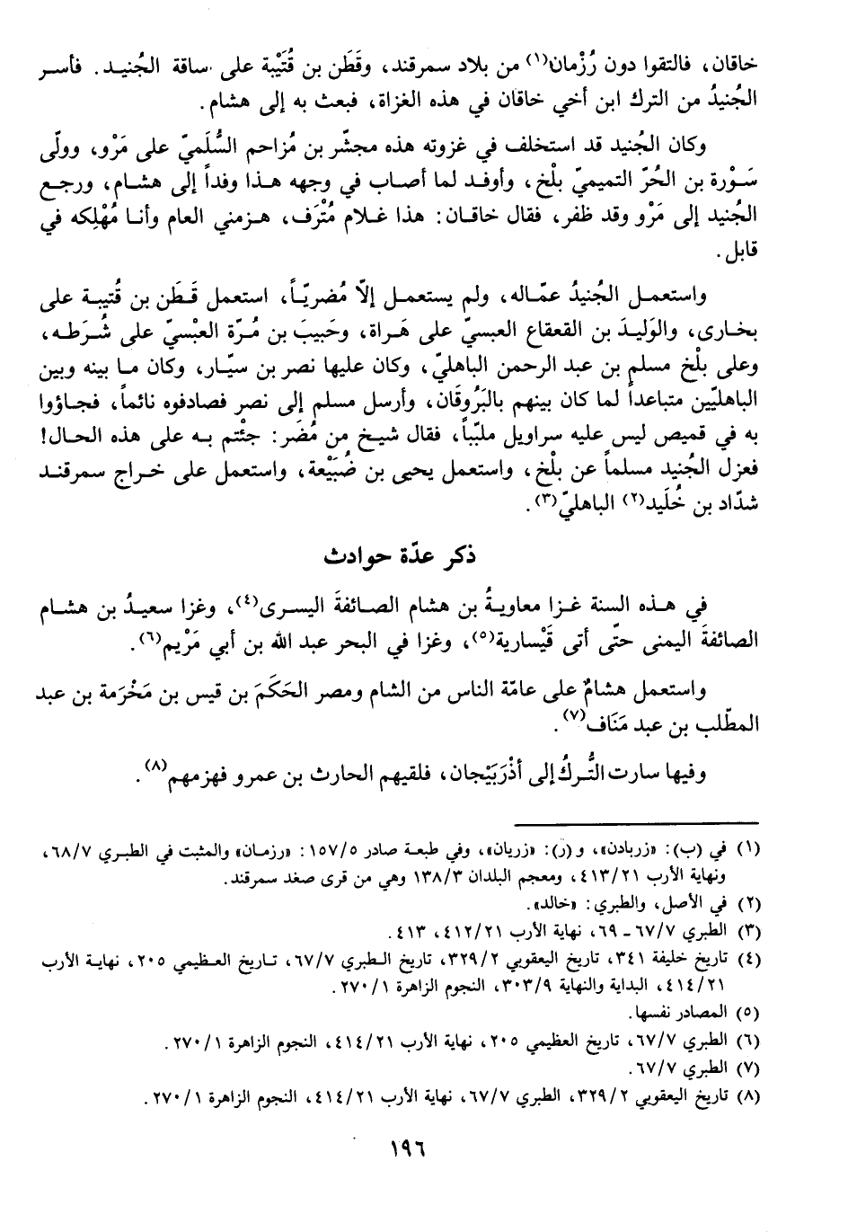 خَاقَانُ، فَالْتَقَوْا دُونَ رُزْمَانَ مِنْ بِلَادِ سَمَرْقَنْدَ، وَقَطَنُ بْنُ قُتَيْبَةَ عَلَى سَاقَةِ الْجُنَيْدِ. فَأَسَرَ الْجُنَيْدُ مِنَ التُّرْكِ ابْنَ أَخِي خَاقَانَ فِي هَذِهِ الْغَزَاةِ فَبَعَثَ بِهِ إِلَى هِشَامٍ.