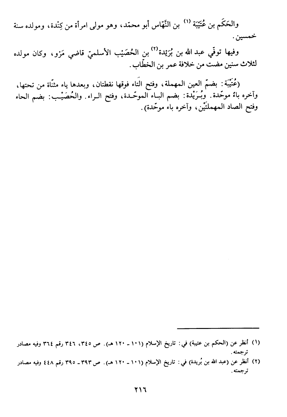 (عُتَيْبَةُ: بِضَمِّ الْعَيْنِ الْمُهْمَلَةِ، وَفَتْحِ التَّاءِ فَوْقَهَا نُقْطَتَانِ، وَبَعْدَهَا يَاءٌ مُثَنَّاةٌ مِنْ تَحْتِهَا، وَآخِرُهُ بَاءٌ مُوَحَّدَةٌ. وَبُرَيْدَةُ: بِضَمِّ الْبَاءِ الْمُوَحَّدَةِ، وَفَتْحِ الرَّاءِ. وَالْحُصَيْبُ: بِضَمِّ الْحَاءِ وَفَتْحِ الصَّادِ الْمُهْمَلَتَيْنِ، وَآخِرُهُ بَاءٌ مُوَحَّدَةٌ) .