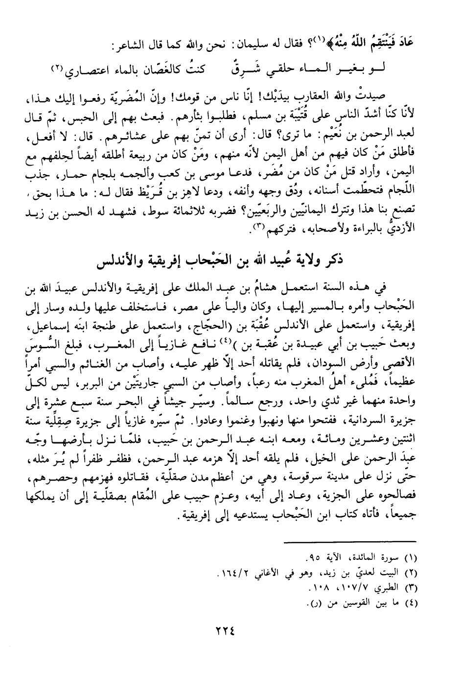 ذِكْرُ وِلَايَةِ عُبَيْدِ اللَّهِ بْنِ الْحَبْحَابِ إِفْرِيقِيَّةَ وَالْأَنْدَلُسَ