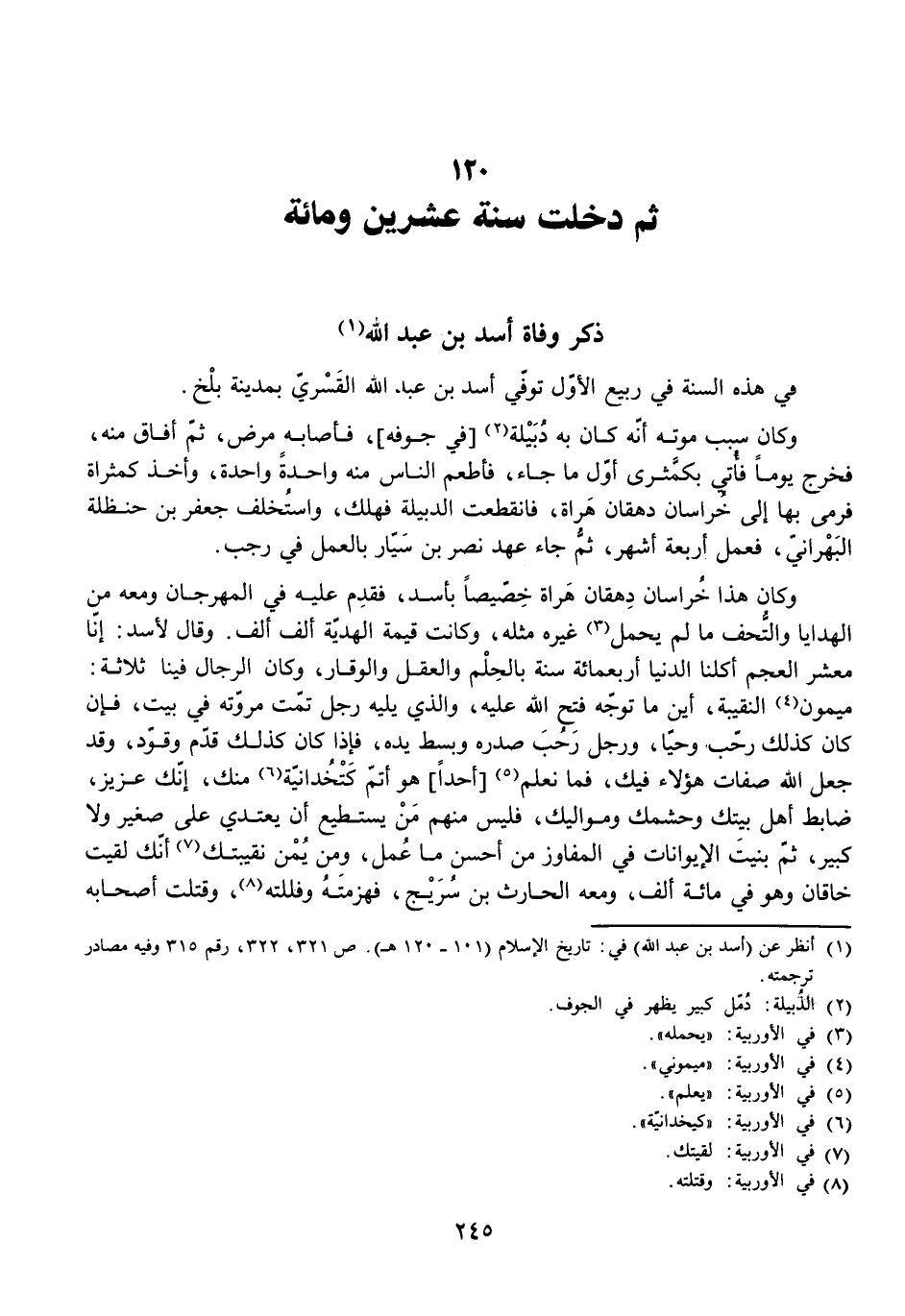 ذِكْرُ وَفَاةِ أَسَدِ بْنِ عَبْدِ اللَّهِ