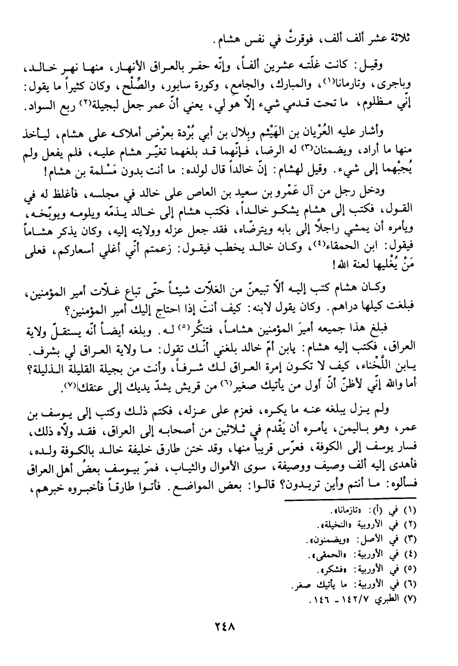 وَكَانَ هِشَامٌ كَتَبَ إِلَيْهِ أَلَّا تَبِيعَنَّ مِنَ الْغَلَّاتِ شَيْئًا حَتَّى تُبَاعَ غَلَّاتُ أَمِيرِ الْمُؤْمِنِينَ، فَبَلَغَتْ كَيْلَهَا دَرَاهِمَ. وَكَانَ يَقُولُ لِابْنِهِ: كَيْفَ أَنْتَ إِذَا احْتَاجَ إِلَيْكَ أَمِيرُ الْمُؤْمِنِينَ؟