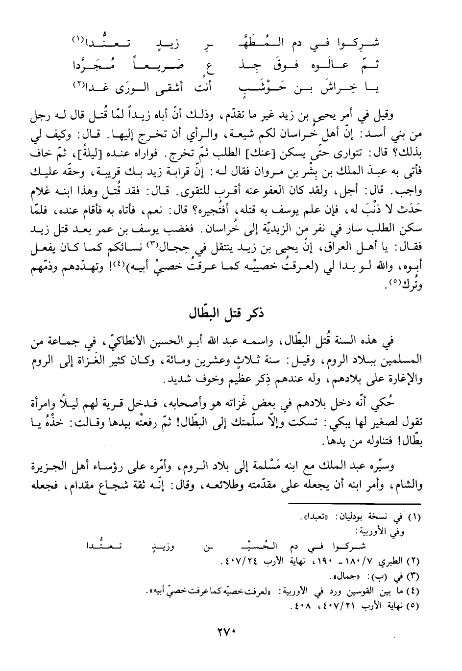 ذَكْرُ قَتْلِ الْبَطَّالِ