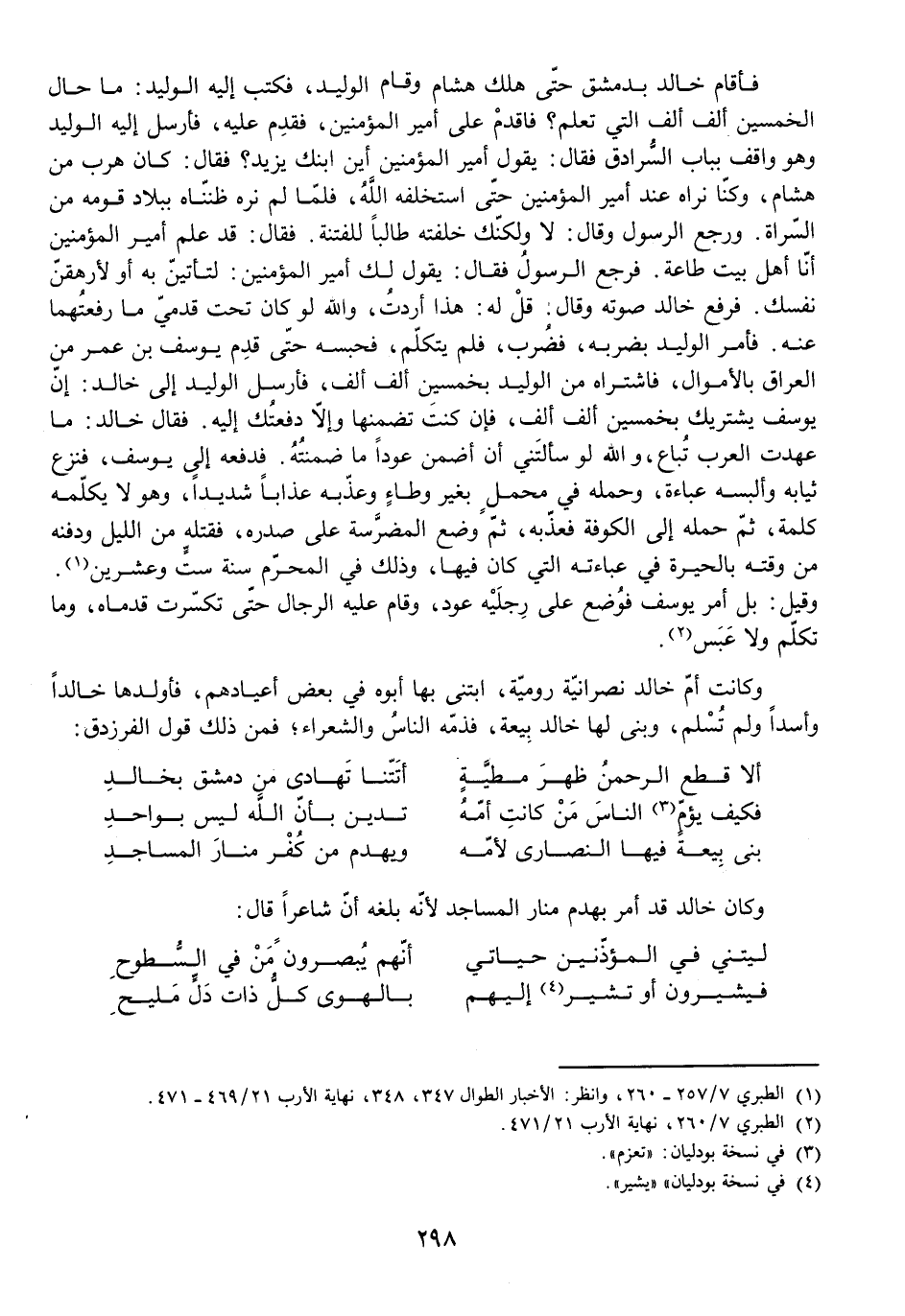 وَكَانَ خَالِدٌ قَدْ أَمَرَ بِهَدْمِ مَنَارِ الْمَسَاجِدِ لِأَنَّهُ بَلَغَهُ أَنَّ شَاعِرًا قَالَ: