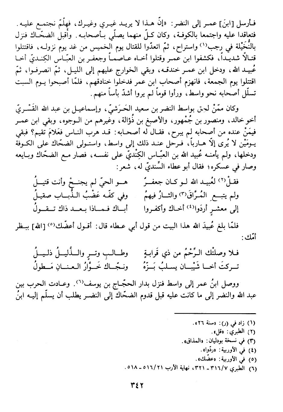 وَوَصَلَ ابْنُ عُمَرَ إِلَى وَاسِطَ فَنَزَلَ بِدَارِ الْحَجَّاجِ بْنِ يُوسُفَ. وَعَادَتِ الْحَرْبُ بَيْنَ عَبْدِ اللَّهِ وَالنَّضْرِ إِلَى مَا كَانَتْ عَلَيْهِ قَبْلَ قُدُومِ الضَّحَّاكِ إِلَى النَّضْرِ يَطْلُبُ أَنْ يُسَلِّمَ إِلَيْهِ ابْنُ