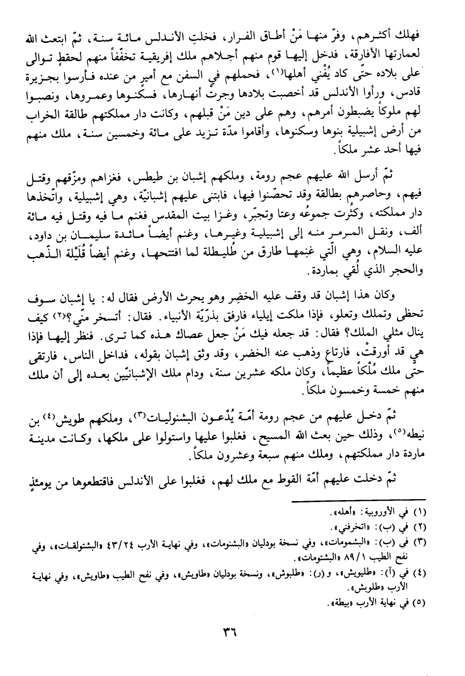 ثُمَّ دَخَلَ عَلَيْهِمْ مِنْ عَجَمِ رُومَةَ أَمَّةٌ يُدْعَونَ الْبَشْنُولِيَّاتِ، وَمَلِكُهُمْ طُوَيْشُ بْنُ نِيطَهْ، وَذَلِكَ حِينَ بَعَثَ اللَّهُ الْمَسِيحَ، فَغَلَبُوا عَلَيْهَا، وَاسْتَوْلَوْا عَلَى مُلْكِهَا، وَكَانَتْ مَدِينَةُ مَارِدَةَ دَارَ مَمْلَكَتِهِمْ، وَمَلَكَ مِنْهُمْ سَبْعَةٌ وَعِشْرُونَ مَلِكًا.