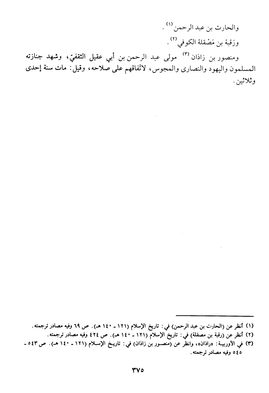 وَالْحَارِثُ بْنُ عَبْدِ الرَّحْمَنِ، وَرَقَبَةُ بْنُ مَصْقَلَةَ الْكُوفِيُّ. وَمَنْصُورُ بْنُ زَاذَانَ مَوْلَى عَبْدِ الرَّحْمَنِ بْنِ أَبِي عَقِيلٍ الثَّقَفِيِّ، وَشَهِدَ جِنَازَتَهُ الْمُسْلِمُونَ وَالْيَهُودُ وَالنَّصَارَى وَالْمَجُوسُ لِاتِّفَاقِهِمْ عَلَى صَلَاحِهِ، وَقِيلَ: مَاتَ سَنَةَ إِحْدَى وَثَلَاثِينَ.