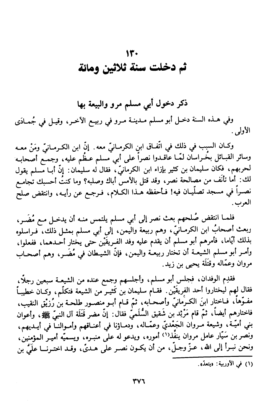 ثُمَّ دَخَلَتْ سَنَةُ ثَلَاثِينَ وَمِائَةٍ