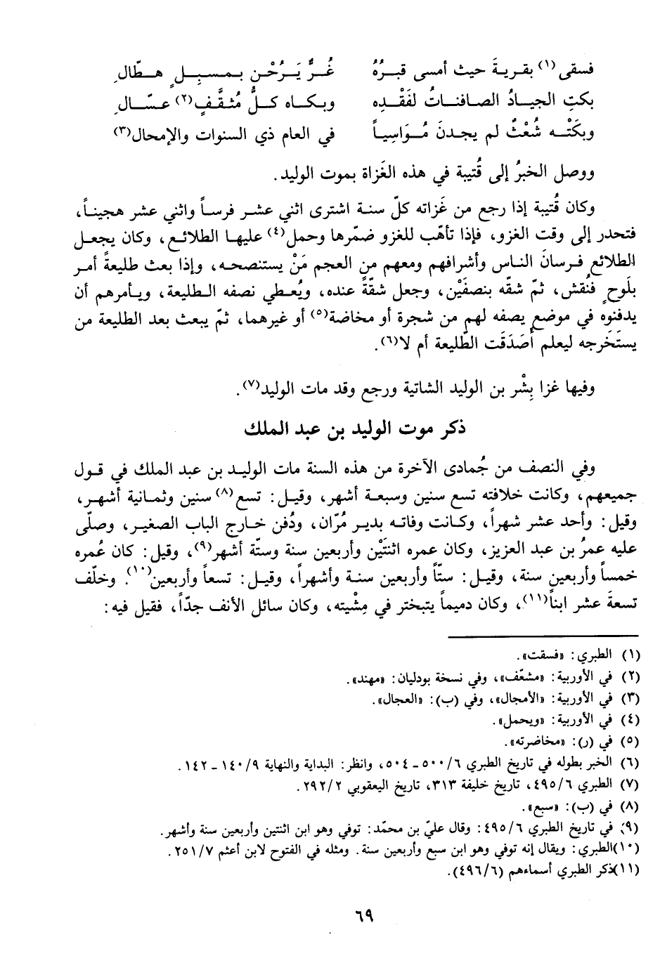 وَوَصْلَ الْخَبَرُ إِلَى قُتَيْبَةَ فِي هَذِهِ الْغَزَاةِ بِمَوْتِ الْوَلِيدِ.