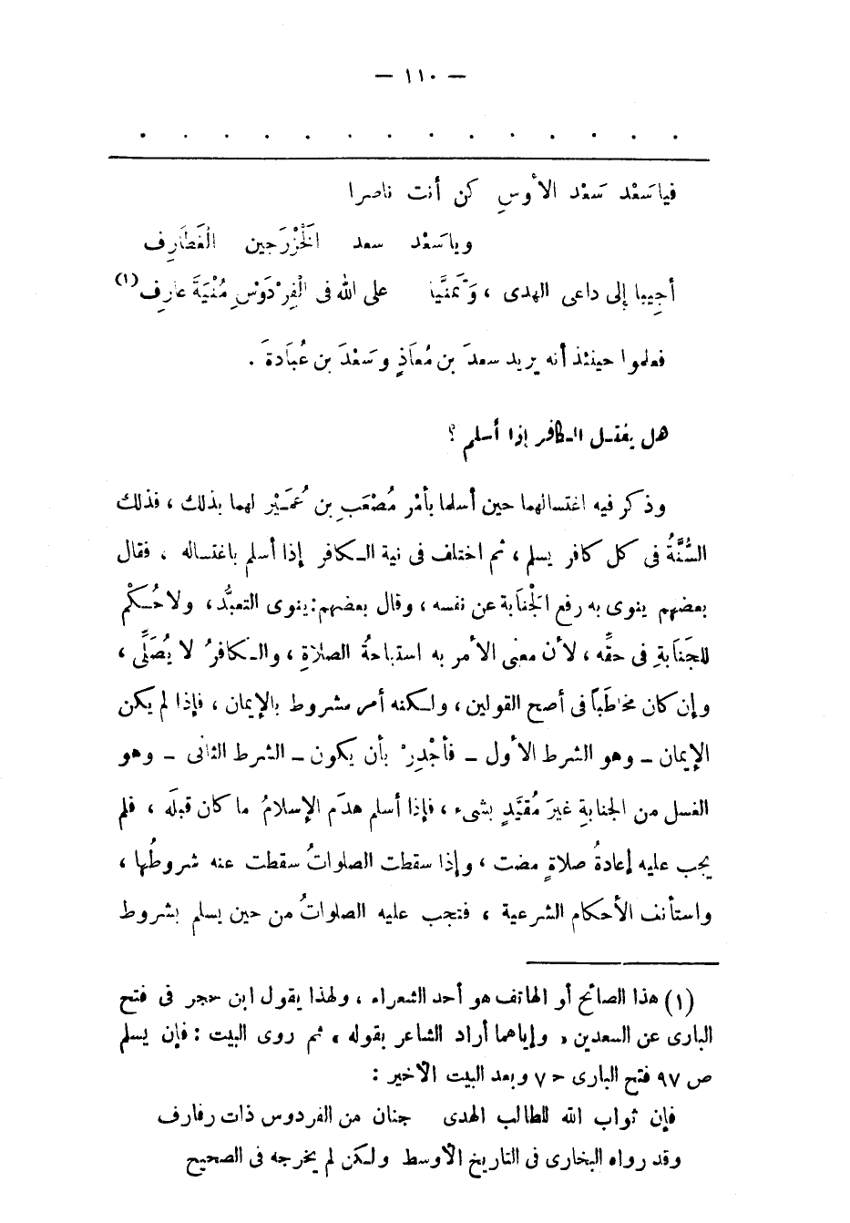 (1) هذا الصائح أو الهاتف هو أحد الشعراء، ولهذا يقول ابن حجر فى فتح البارى عن السعدين «وإياهما أراد الشاعر بقوله» ثم روى البيت: فإن يسلم ص 97 فتح البارى ح 7 وبعد البيت الأخير: