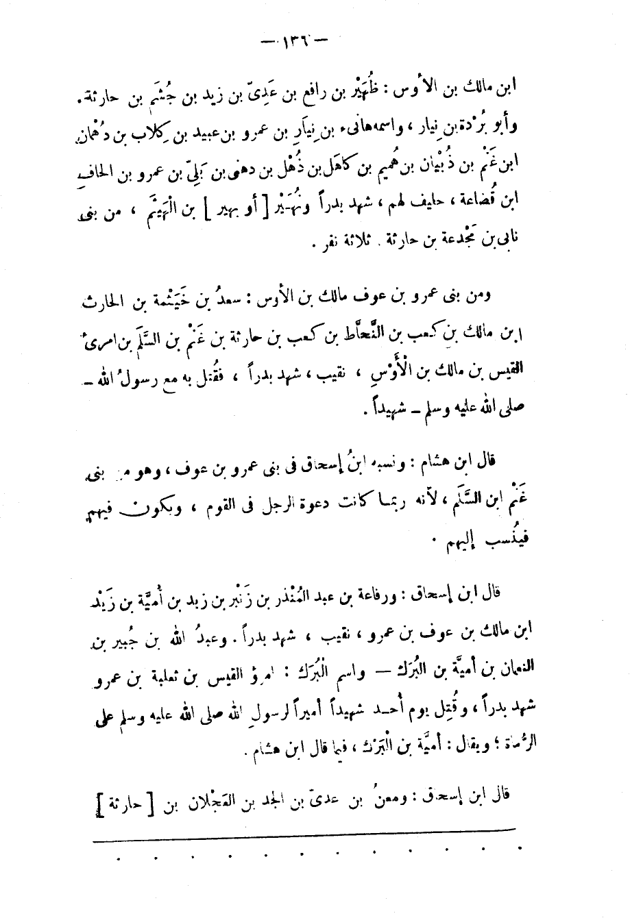 وَمِنْ بَنِي عَمْرِو بْنِ عَوْفٍ مَالِكِ بْنِ الأوس: سعد بن خيثمة بن الحارث ابن مالك بن كعب بن النحاط بن كعب بْنِ حَارِثَةَ بْنِ غَنْمِ بْنِ السّلْمِ بْنِ امْرِئِ الْقَيْسِ بْنِ مَالِكِ بْنِ الْأَوْسِ، نَقِيبٌ، شَهِدَ بَدْرًا، فَقُتِلَ بِهِ مَعَ رَسُولِ اللهِ- صَلَّى اللَّهُ عَلَيْهِ وَسَلَّمَ- شَهِيدًا.
