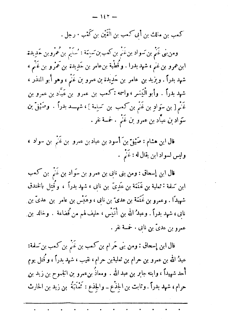وَمِنْ بَنِي غَنْمِ بْنِ سَوَادِ بْنِ غَنْمِ بْنِ كَعْبِ بْنِ سَلَمَةَ: سُلَيْمُ بْنُ عَمْرِو بن حديدة ابن عَمْرِو بْنِ غَنْمٍ، شَهِدَ بَدْرًا. وَقُطْبَةُ بْنُ عامر بن حديدة بن عمرو بن غنم، شهد بدرا. ويزيد بن عامر بن حديدة بن عمرو بن غَنْمٍ، وَهُوَ أَبُو الْمُنْذِرِ، شَهِدَ بَدْرًا. وَأَبُو الْيَسَرِ، وَاسْمُهُ: كَعْبُ بْنُ عَمْرِو بْنِ عَبّادِ بن عمرو بن غَنْمِ [بْنِ سَوَادِ بْنِ غَنْمِ بْنِ كَعْبِ بْنِ سلمة] ، شَهِدَ بَدْرًا. وَصَيْفِيّ بْنُ سَوَادِ بْنِ عَبّادِ بن عمرو بن غنم. خمسة نفر.