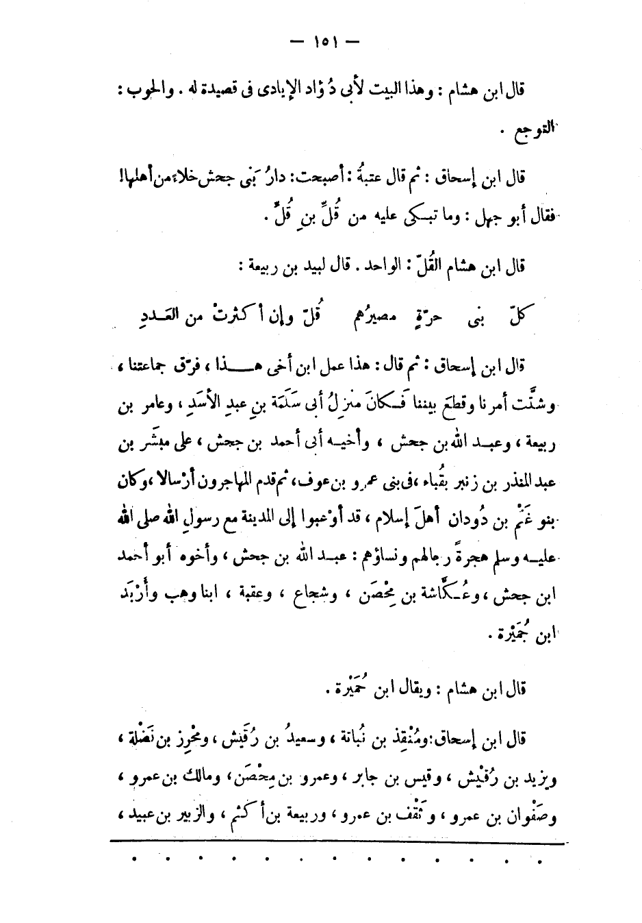 قال ابن إسحاق: ثم قال عتبة: أَصْبَحَتْ: دَارُ بَنِي جَحْشٍ خَلَاءً مِنْ أَهْلِهَا! فَقَالَ أَبُو جَهْلٍ: وَمَا تَبْكِي عَلَيْهِ مِنْ قُلّ بْنِ قُلّ.