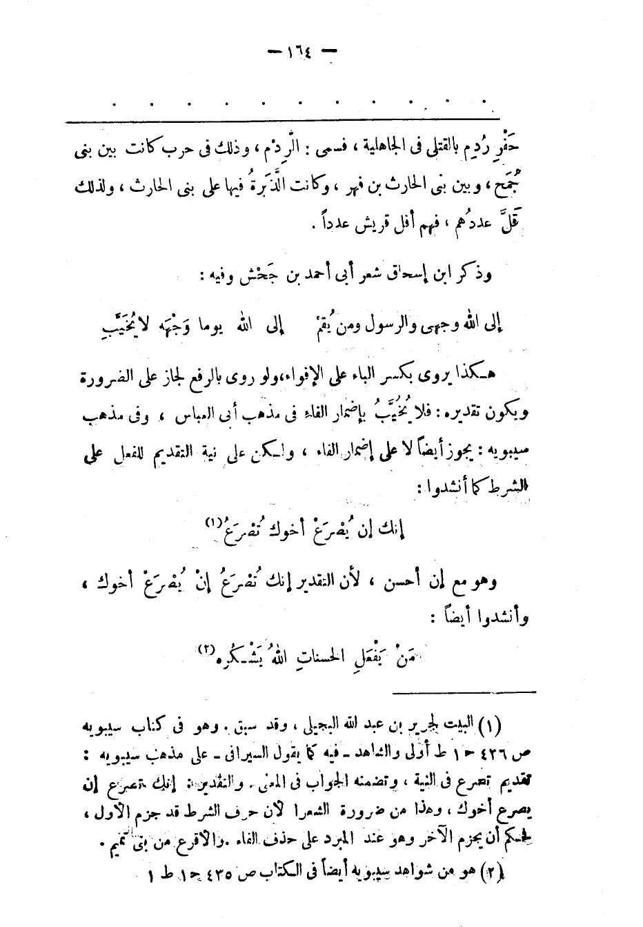 (1) البيت لجرير بن عبد الله البجيلى، وقد سبق. وهو فى كتاب سيبويه ص 436 ح 1 ط أولى والشاهد- فيه كما يقول السيرافى- على مذهب سيبويه: تقديم تصرع فى النية، وتضمنه الجواب فى المعنى. والتقدير: إنك تصرع إن يصرع أخوك، وهذا من ضرورة الشعرا لأن حرف الشرط قد جزم الأول، فحكم أن يجزم الآخر وهو عند المبرد على حذف الفاء. والأقرع من بنى تميم.