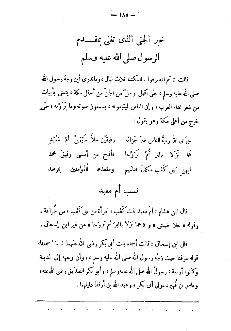 جَزَى اللهُ رَبّ النّاسِ خَيْرَ جَزَائِهِ ... رَفِيقَيْنِ حَلّا خَيْمَتَيْ أُمّ مَعْبَدِ