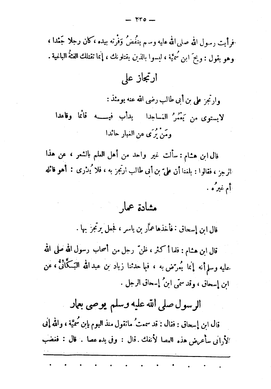 قَالَ ابْنُ إسْحَاقَ: فَأَخَذَهَا عَمّارُ بْنُ يَاسِرٍ، فَجَعَلَ يَرْتَجِزُ بِهَا.