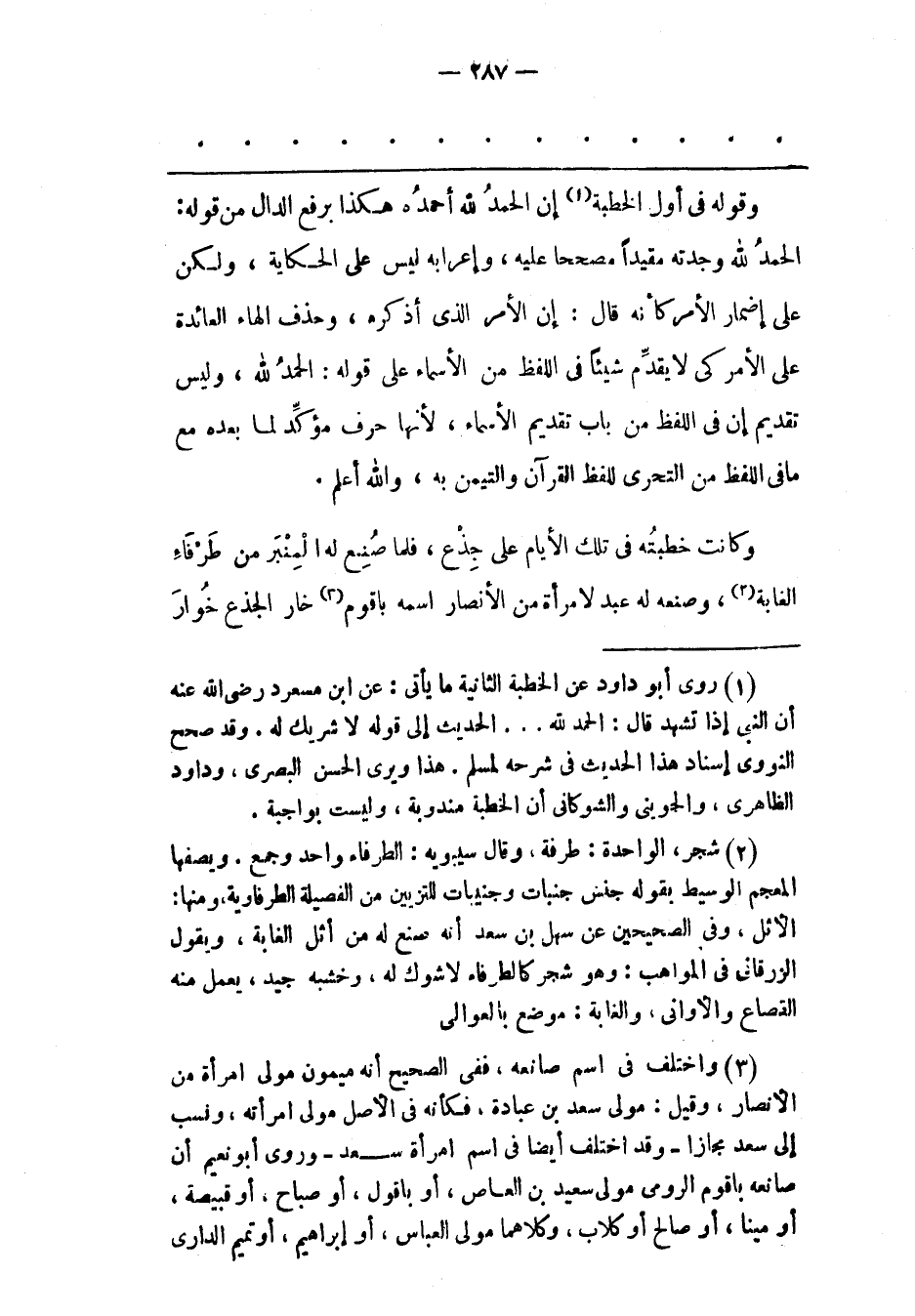 وَقَوْلُهُ فِي أَوّلِ الْخُطْبَةِ «1» إنّ الْحَمْدَ لِلّهِ أَحْمَدُهُ هَكَذَا بِرَفْعِ الدّالِ مِنْ قَوْلِهِ: