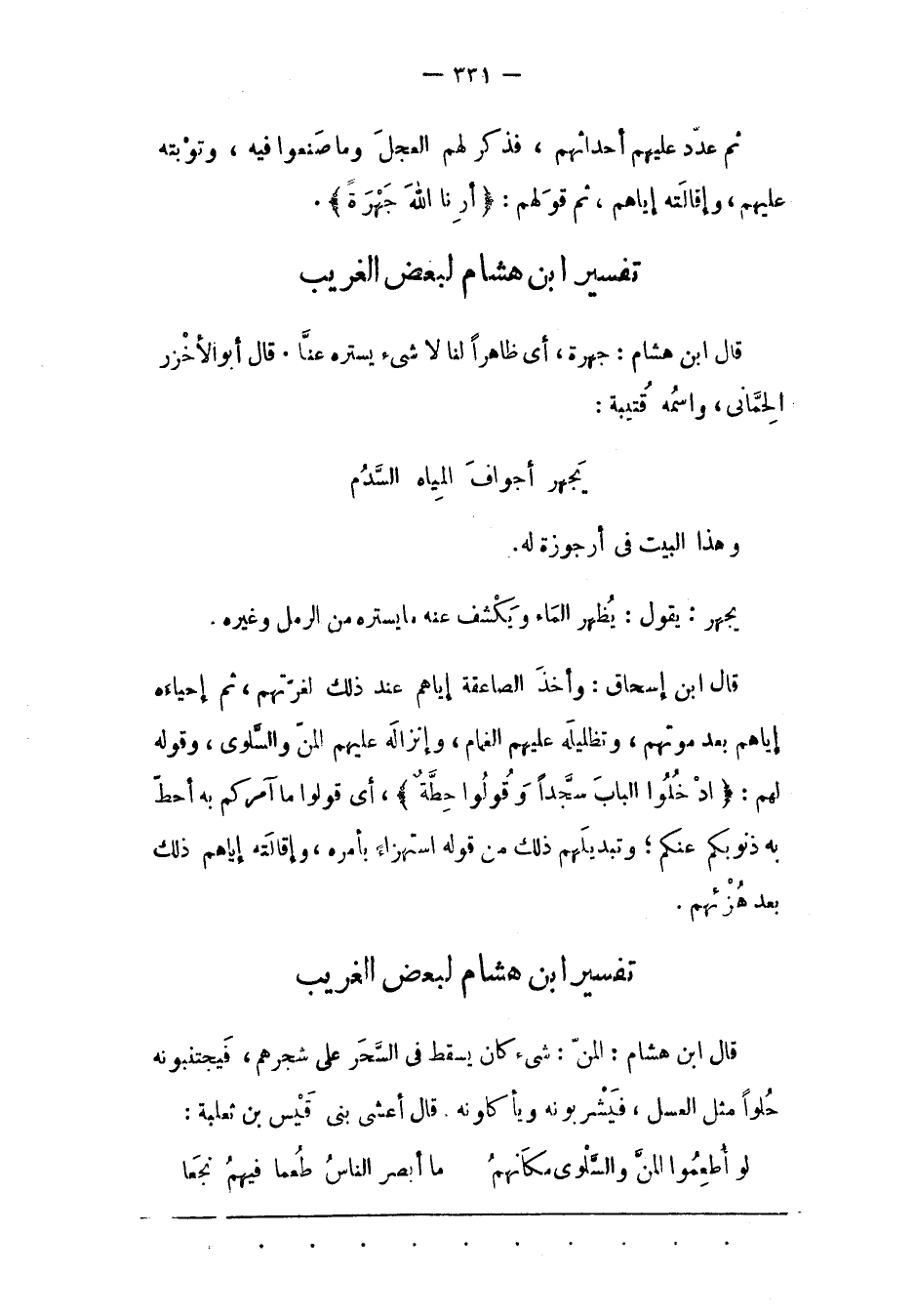 [تَفْسِيرُ ابْنِ هشام لبعض الغريب]