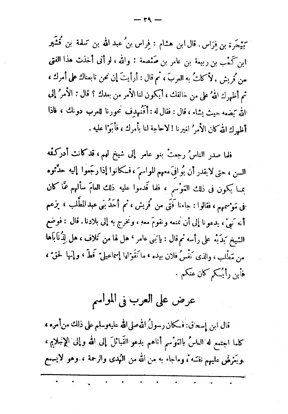 [عرض عَلَى الْعَرَبِ فِي الْمَوَاسِمِ]