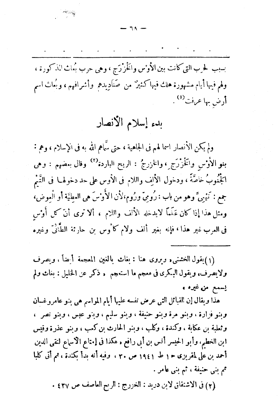 (1) يقول الخشنى «ويروى هنا: بغاث بالغين المعجمة أيضا، ويصرف ولا يصرف، ويقول البكرى فى معجم ما استعجم «ذكر عن الخليل: بغاث ولم يسمع من غيره» هذا ويقال إن القبائل التى عرض نفسه عليها أيام المواسم هى بنو عامر وغسان وبنو فزارة، وبنو مرة وبنو حنيفة، وبنو سليم، وبنو عبس، وبنو نصر، وثعلبة بن عكابة، وكندة، وكلب، وبنو الحارث بن كعب، وبنو عذرة وقيس ابن الخطيم، وأبو الحيسر أنس بن أبى رافع «هكذا فى إمتاع الأسماع لتقى الدين أحمد بن على لمقريزى ح 1 ط 1941 ص 30، وفيه أنه بدأ بكندة، ثم أتى كلبا ثم بنى حنيفة، ثم بنى عامر.