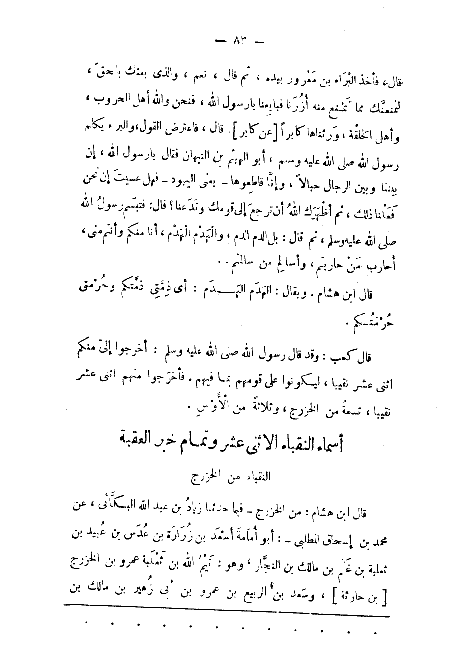 [أَسَمَاءُ النّقَبَاءِ الِاثْنَيْ عَشَرَ وَتَمَامُ خبر العقبة]