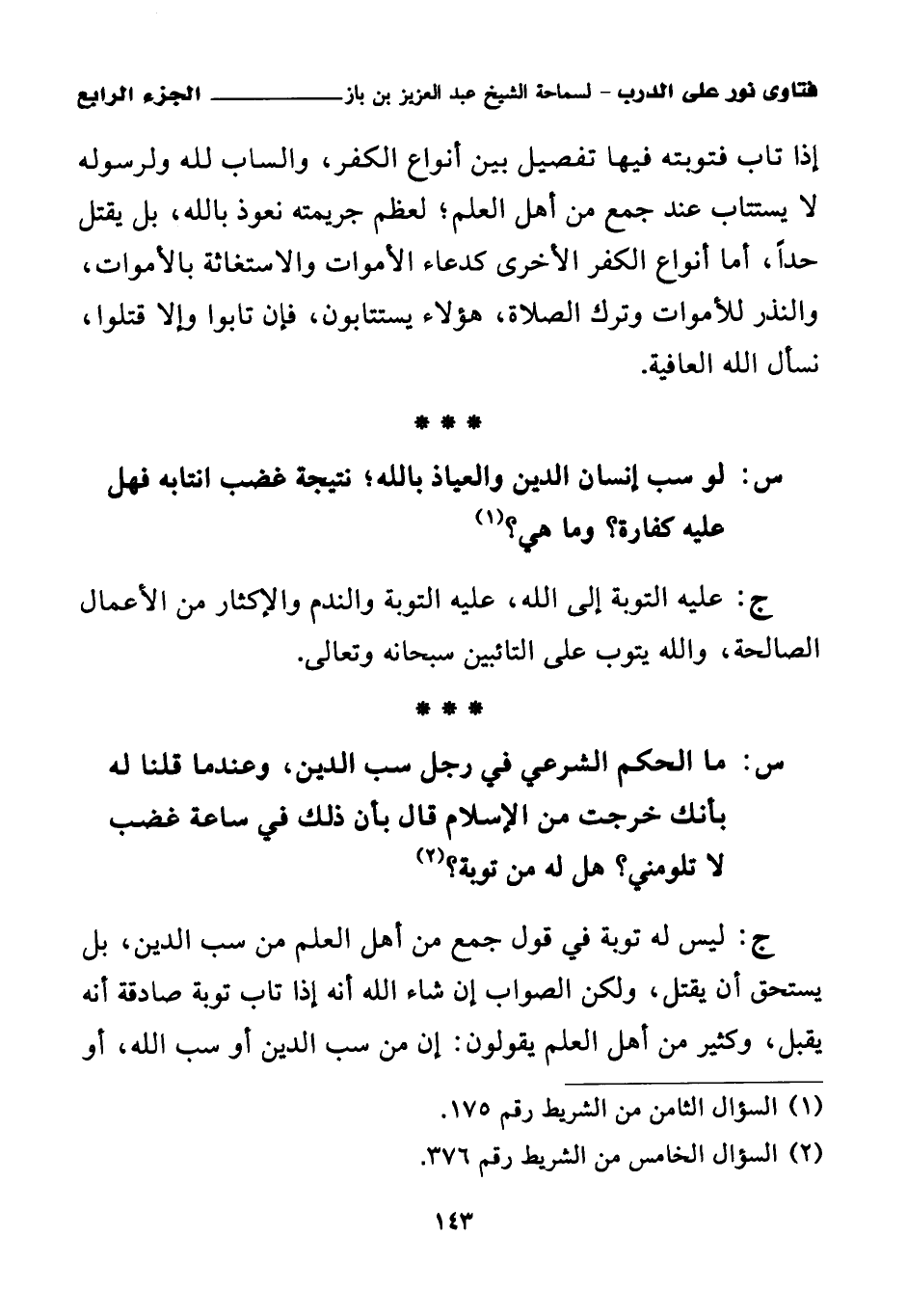 كتاب فتاوى نور على الدرب لابن باز بعناية الشويعر (اسم الجزء: 4)