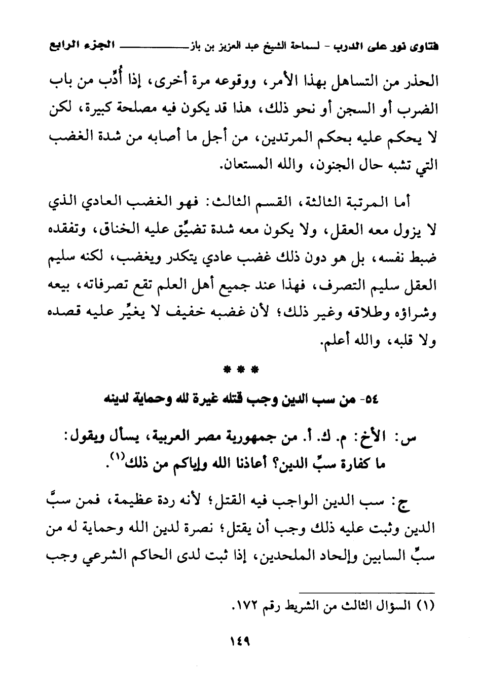 54 - من سب الدين وجب قتله غيرة لله وحماية لدينه