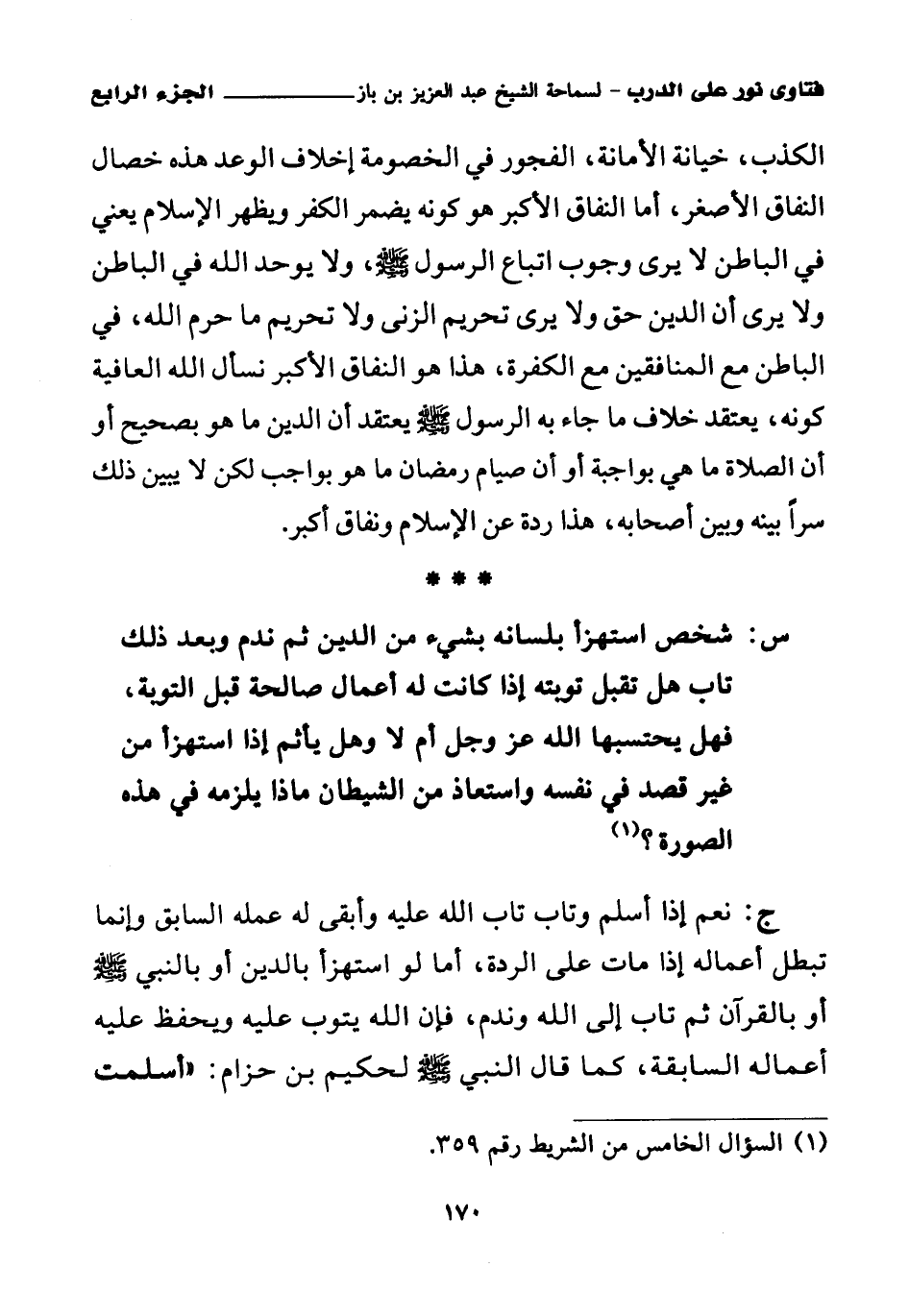 كتاب فتاوى نور على الدرب لابن باز بعناية الشويعر (اسم الجزء: 4)