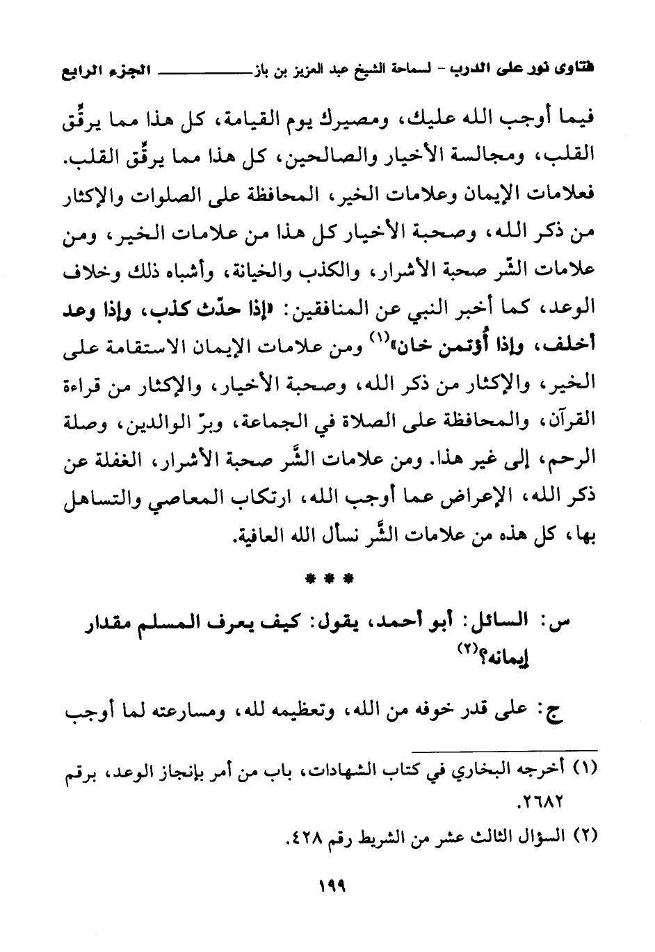 س: السائل: أبو أحمد، يقول: كيف يعرف المسلم مقدار إيمانه؟ (¬2)