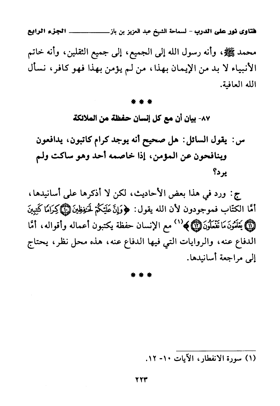 كتاب فتاوى نور على الدرب لابن باز بعناية الشويعر (اسم الجزء: 4)