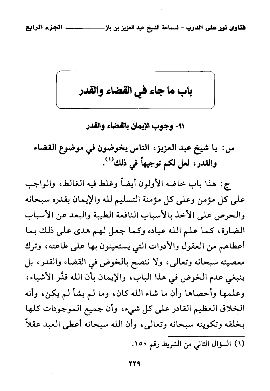س: يا شيخ عبد العزيز، الناس يخوضون في موضوع القضاء والقدر، لعل لكم توجيها في ذلك (¬1).