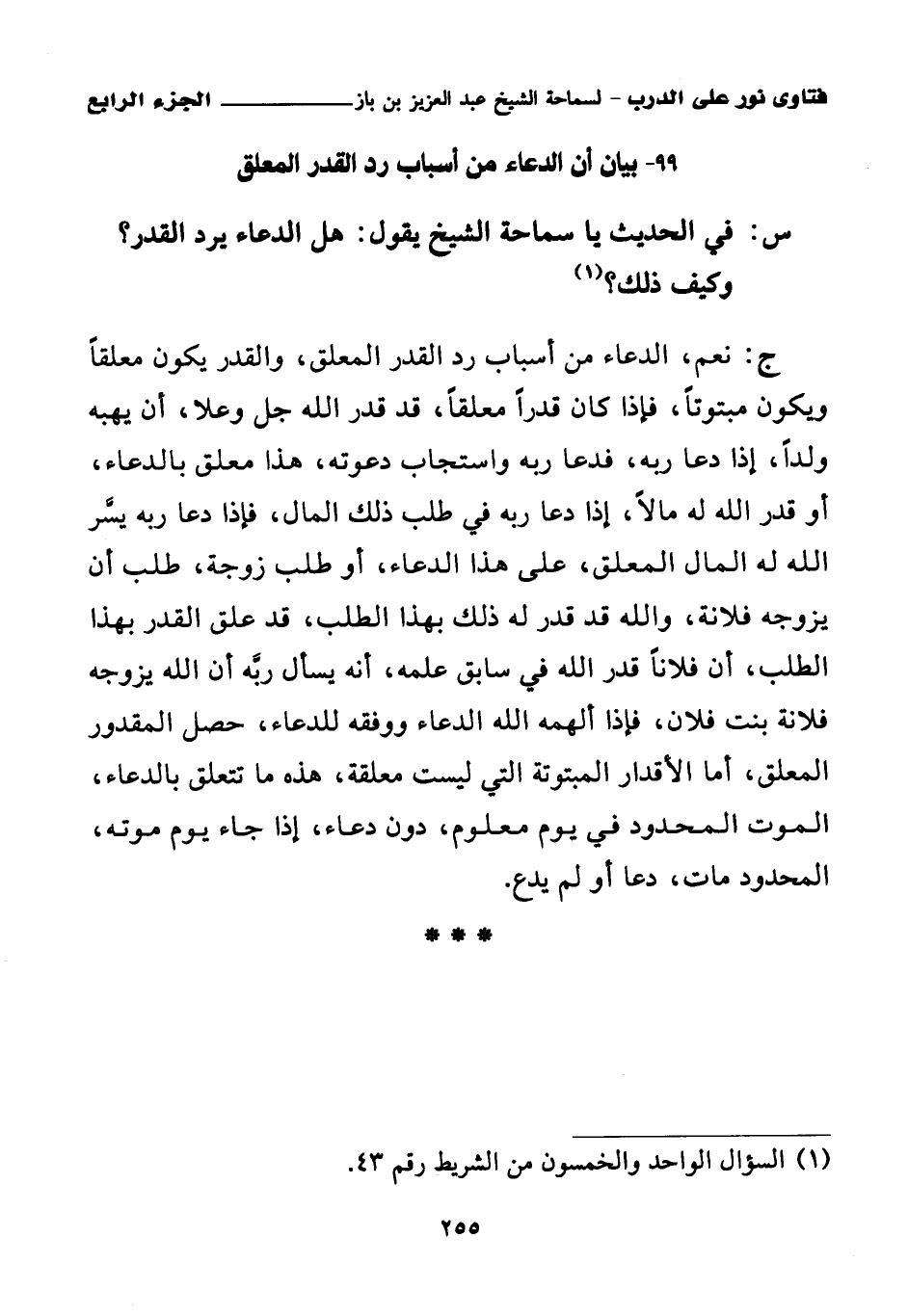 99 - بيان أن الدعاء من أسباب رد القدر المعلق