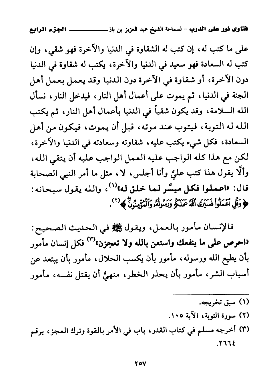 (¬3) أخرجه مسلم في كتاب القدر، باب في الأمر بالقوة وترك العجز، برقم 2664.