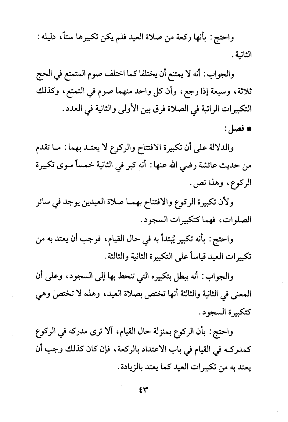 والجواب: أنه يبطل بتكبيره التي تنحط بها إلى السجود، وعلى أن المعنى في الثانية والثالثة أنها تختص بصلاة العيد، وهذه لا تختص وهي كتكبيرة السجود.