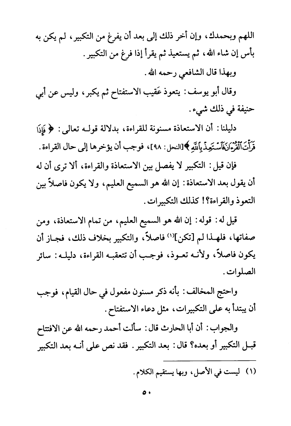 قيل له: قوله: إن الله هو السميع العليم، من تمام الاستعاذة، ومن صفاتها، فلهذا لم [تكن] (¬1) فاصلًا، والتكبير بخلاف ذلك، فجاز أن يكون فاصلًا، ولأنه تعوذ، فوجب أن تتعقبه القراءة، دليله: سائر الصلوات.
