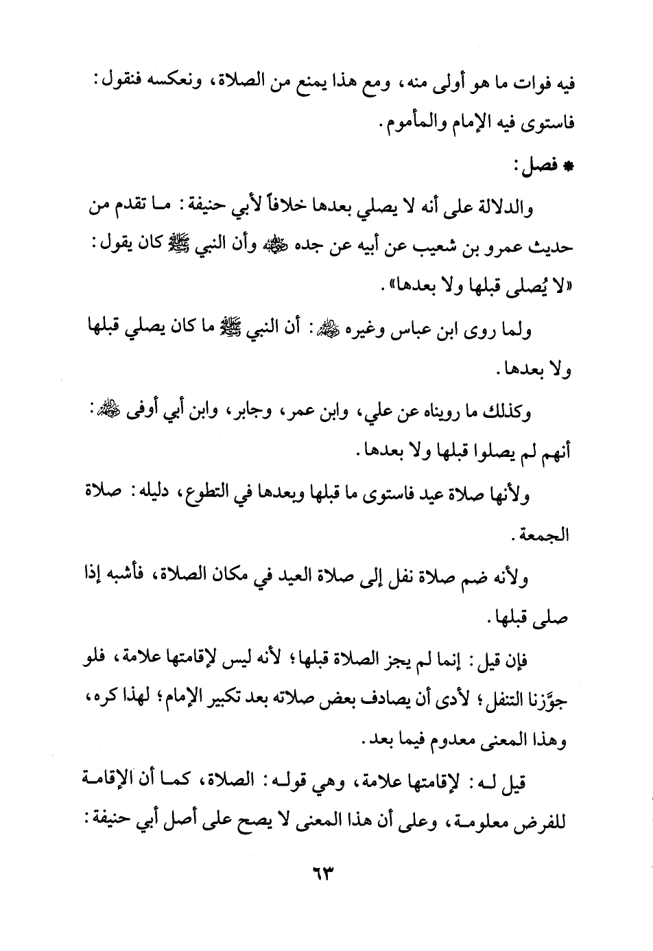 والدلالة على أنه لا يصلي بعدها خلافًا لأبي حنيفة: ما تقدم من حديث عمرو بن شعيب عن أبيه عن جده - رضي الله عنه - وأن النبي - صلى الله عليه وسلم - كان يقول: "لا يُصلى قبلها ولا بعدها".