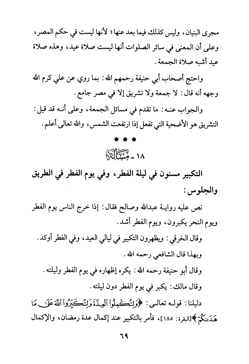 18 - مَسْألَة: التكبير مسنون في ليلة الفطر، وفي يوم الفطر في الطريق والجلوس: