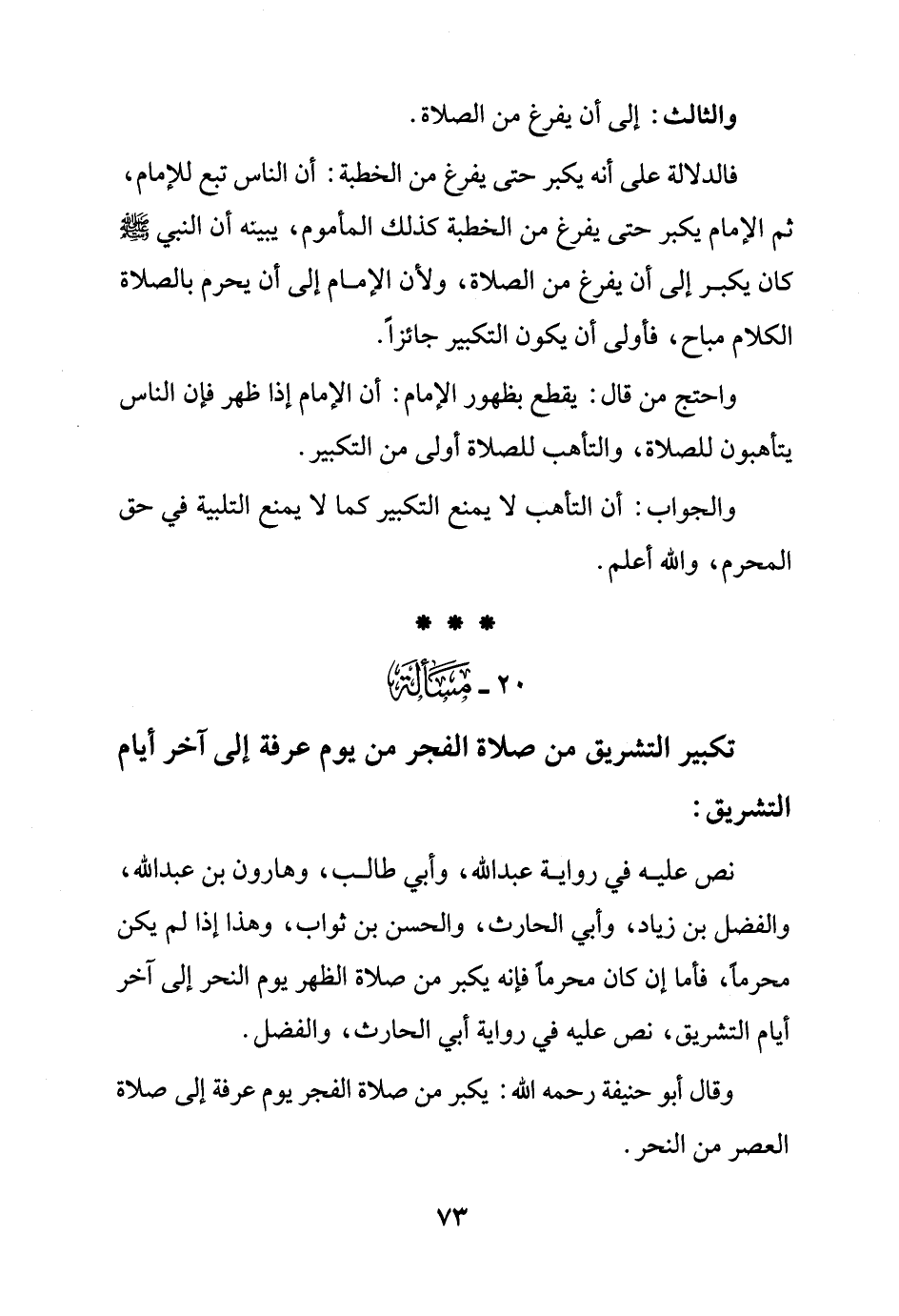 20 - مَسْألَة: تكبير التشريق من صلاة الفجر من يوم عرفة إلى آخر أيام التشريق: