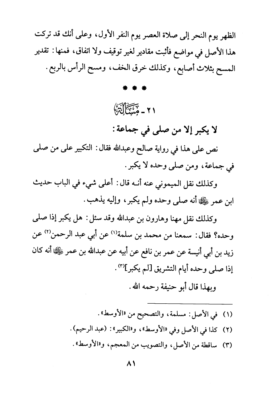 21 - مَسْألَة: لا يكبر إلا من صلى في جماعة: